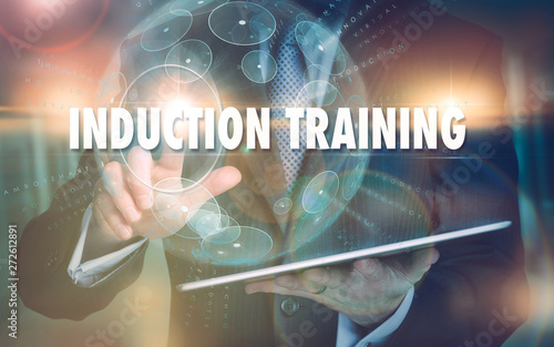 Fototapeta premium A hand selecting a Induction Training business concept on a futuristic...