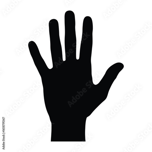 Obraz premium A hand with an open palm and five fingers extended, , symbolizing greeting,...