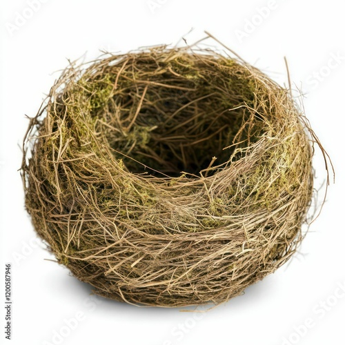 © STOCKYE STUDIO, Obraz premium a handcrafted bird's nest made from intertwined twigs and lined with soft moss, exuding natural elegance and rustic charm.