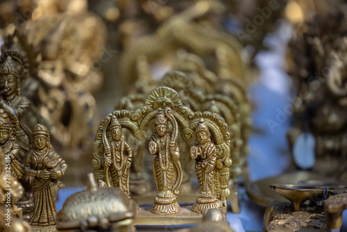Fototapeta premium A handmade brass idol of Lord Ram is a stunning piece of art that blends...