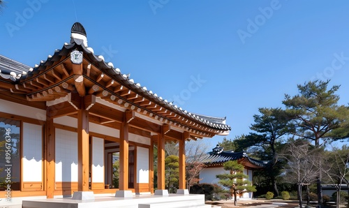 © simba kim, Obraz premium A Hanok house with traditional wooden architecture, Generative AI