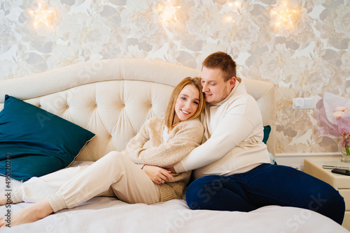 Obraz premium a happy and loving couple hugs on the bed