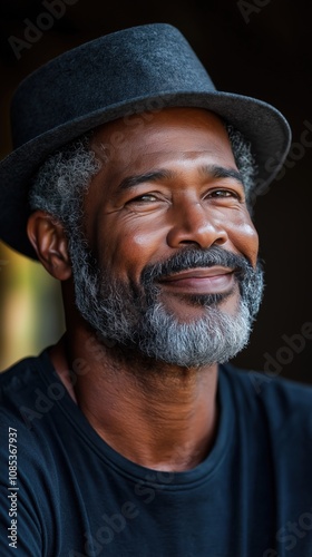 Fototapeta premium A happy Black male enjoys a moment of joy in warm natural light, showcasing...
