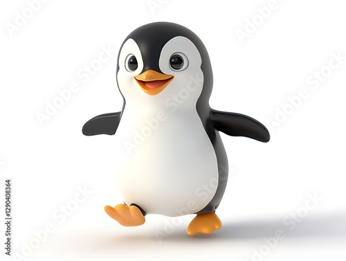 © Ardhana, Fototapeta premium A happy cartoon penguin cheerfully walks across a white surface