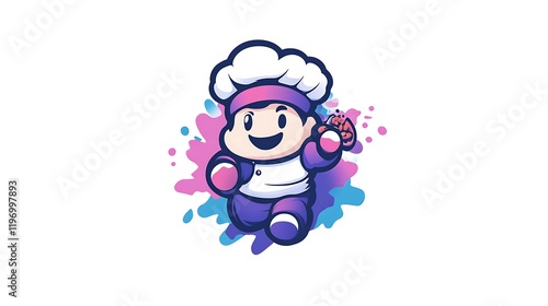 © Ponpes, Obraz premium A Happy Chef Cartoon Character Holding Baked Goods