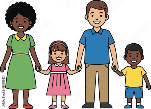 © sarjana, Fototapeta premium A happy diverse family illustration showing parents and children smiling and holding hands together