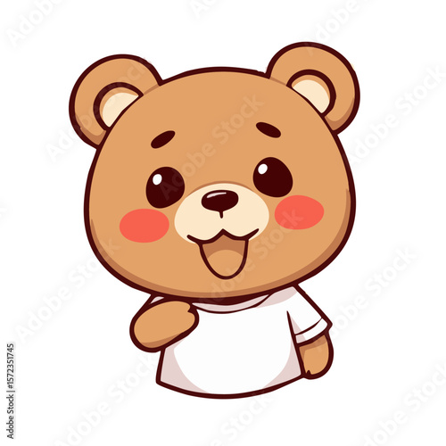 Fototapeta premium A happy joyful cute bear with white t-shirt illustration cartoon character
