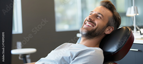 Fototapeta premium A happy man is sitting in his dentist chair