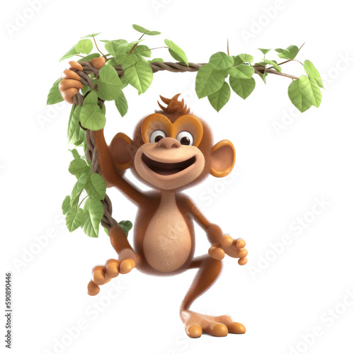 Naklejka premium A Happy Monkey cartoon character holding onto a tree