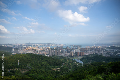 © Dong, Obraz premium A Harmonious Blend of Urban Panorama and Natural Landscape from a Elevated Viewpoint