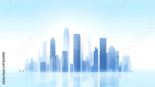 Naklejka premium A hazy silhouette of a modern city skyline with reflections in the water.