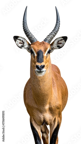 © Fifincs67, Naklejka premium A head-on, studio-style shot of a graceful, horned antelope, isolated on white