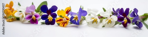 © Elle Arden , Naklejka premium A header with a row of spring flowers on white background. Generative AI.
