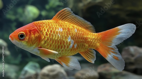 Naklejka premium A healthy, vibrant golden goldfish enjoying its aquatic environment - tail...