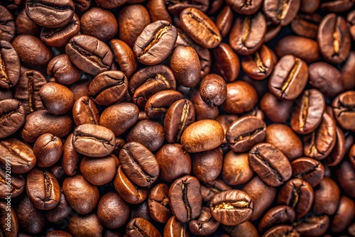 Fototapeta premium A heap of coffee beans stacked together, ready to be brewed into a delicious...