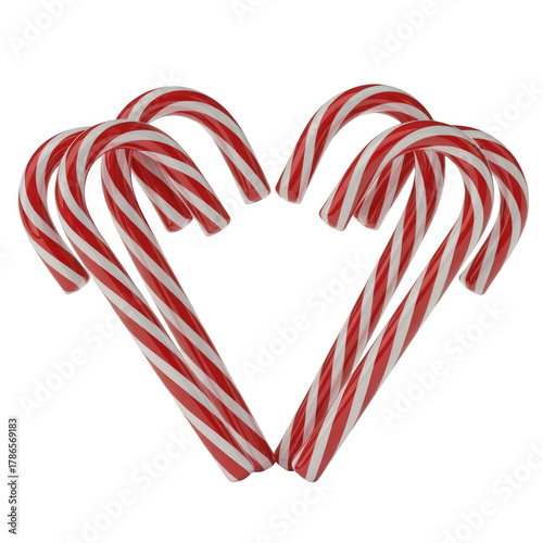 © Gul Ahmad Artworks, Fototapeta premium A heart shape formed by red and white striped candy canes isolated on transparent background