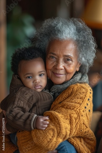 Obraz premium A heartwarming image featuring a grandmother and her grandson sharing a warm...