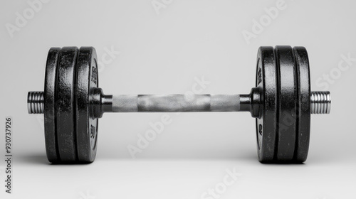 Fototapeta premium A heavy barbell with weights lying on a grey floor, symbolizing strength,...