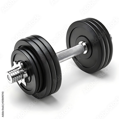 © Apon, Naklejka premium A Heavy Black Dumbbell Symbolizes Strength, Fitness, And Dedication To A Healthy Lifestyle Against A Clean White Background
