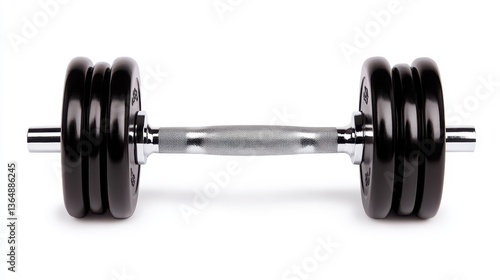 Naklejka premium A heavy dumbbell formed with sleek black weights rests horizontally on a...