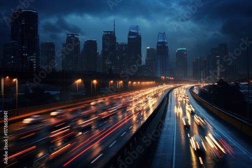 Fototapeta premium A heavy traffic highway building architecture metropolis.