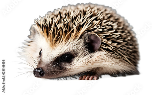 © julien.habis, Obraz premium A hedgehog curled up into a tiny ball, isolated on a empty plain background