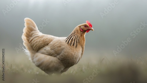 © Sona, Naklejka premium A hen standing on grass with a blurred background.