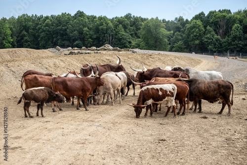 © Cavan, Obraz premium A herd of cattle outdoors at a wildlife park