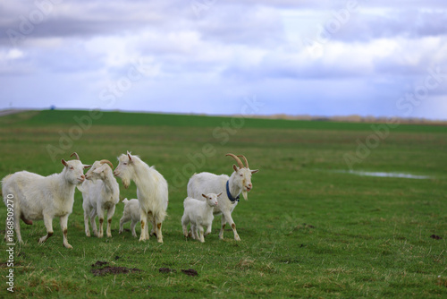 Fototapeta premium A herd of goats grazes in a farmer's meadow.