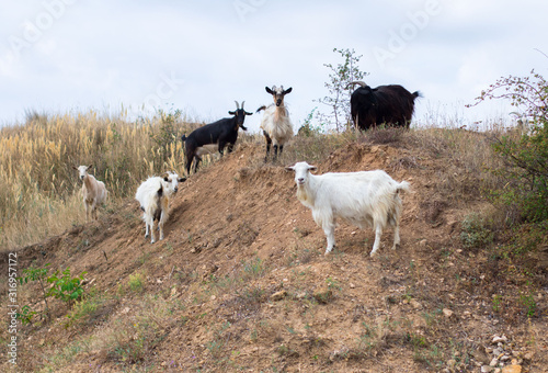 © AlexR, Obraz premium a herd of goats in the desert farm