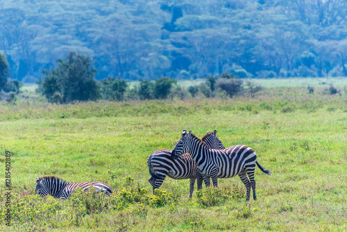 © Goldilock Project, Naklejka premium A herd of Plains zebra -Equus quagga- grazing in Lake Nakamuru national park in Kenya