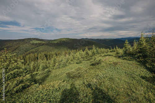 © Дмитро Григорчак, Obraz premium A herd of sheep grazing on a lush green field