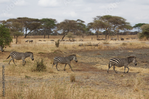 Obraz premium A Herd of Zebras in Tanzania