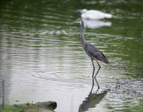 Naklejka premium A heron wading in a pond looking for some fish
