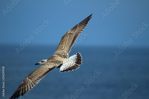 Fototapeta premium A herring gull flying over the Mediterranean sea near Keramoti, Greece