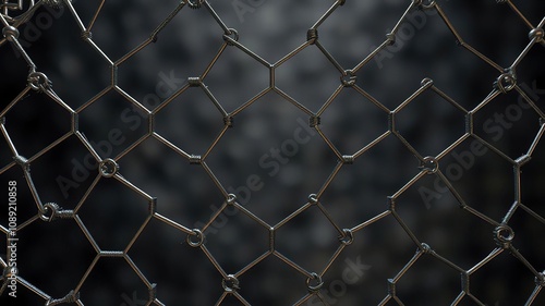 Fototapeta premium A hexagonal grid of metallic wires with intricate patterns and designs, interior design, aluminum