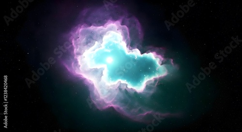 © Shabana, Fototapeta premium A hidden galaxy bathed in dim purple and teal light, shrouded in cosmic dust, Ai Generated