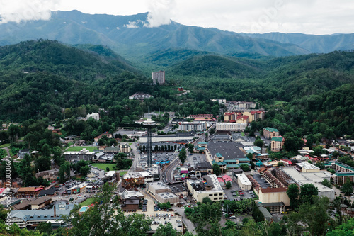 © Ursula Page, Obraz premium A high angle aerial view of Gatlinburg Tennessee and the Great Smoky Mountains