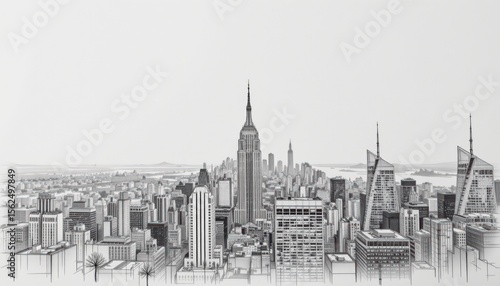 Fototapeta premium a high angle drawing illustrates a vast cityscape under a bright, expansive sky