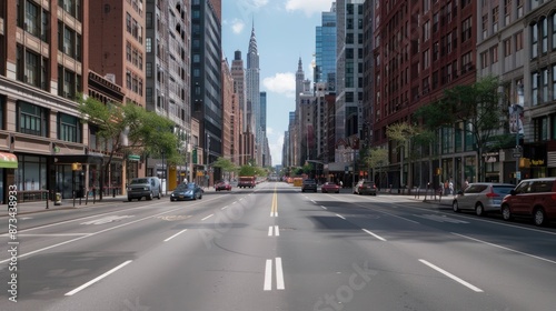 © lililia, Fototapeta premium A high-angle view of a bustling Tokyo cityscape, featuring a network of elevated highways winding through the dense urban environment, leading to a towering skyline against a clear blue sky