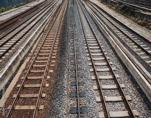 Fototapeta premium A high angle view showing the railway line stretching far away, generative ai