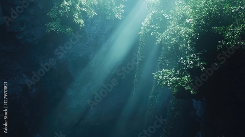 © Sampao, Obraz premium A high canopy view of a dense rainforest, treetops stretching into the distance.