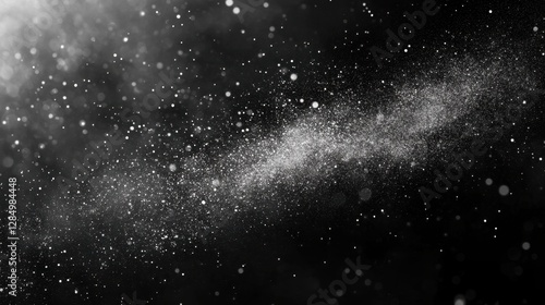 © Sarawut, Obraz premium A high-contrast black and white abstract background featuring scattered particles, creating a dynamic texture for artistic and design projects.