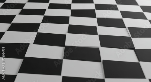 Fototapeta premium A high-contrast geometric background featuring perfect rows of alternating white and black squares forming a classic checkerboard pattern ,tessellation ,retro ,checkerboard