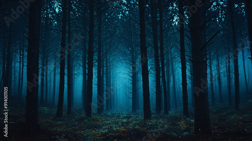 © NE97, Naklejka premium A high definition photographic creative of a forest at night, capturing the beauty and mystery of the natural landscape.
