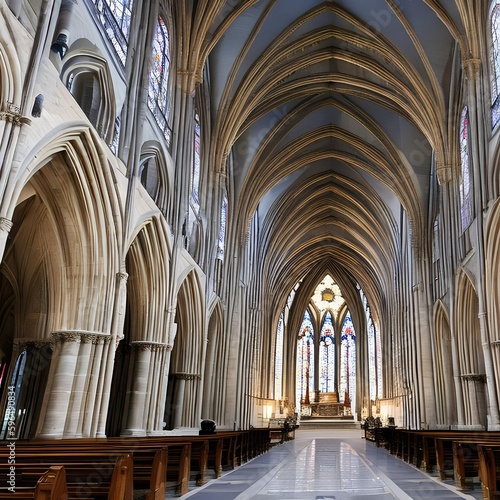 Fototapeta premium 8 A High Gothic-style cathedral with pointed arches and intricate stone...