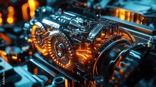 Fototapeta premium A high-performance car engine with glowing gears and rotating parts,...