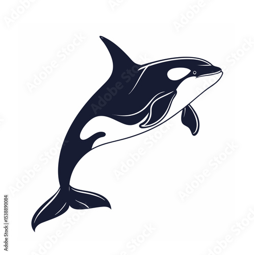 Naklejka premium A high-quality vector illustration of a majestic orca fish, also known as a killer whale, depicted in a sleek, dynamic pose. The design showcases the orca's distinctive black and white coloring,