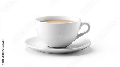 © KASUEMA SALAE, Obraz premium A high-quality white porcelain coffee cup with a saucer, placed on a white background
