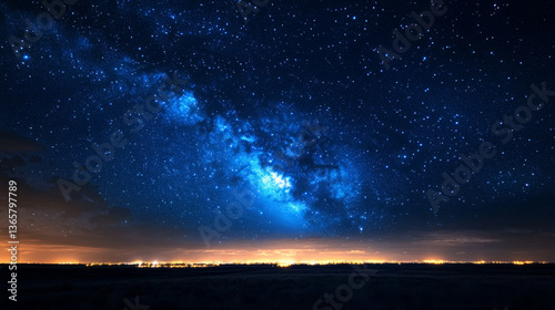 © Farid, Fototapeta premium A high-resolution background image showcasing a starry night sky over Texas, contrasted by the glow of distant city lights